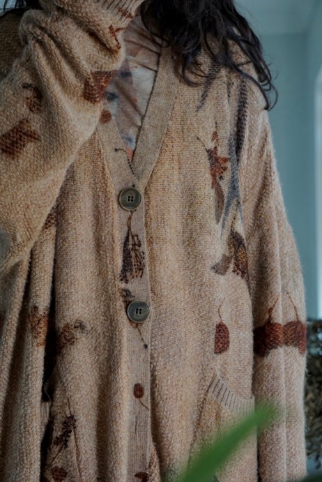 高品質な羊毛を贅沢に使用した、ブラウン地に印花模様が映えるウールニットロングカーディガン。柔らかな肌触りと優れた保温性を兼ね備え、一日中快適な着心地をお約束します。エレガントなロングシルエットは様々なコーディネートに馴染み、オフィスからカジュアルシーンまで幅広く活躍。上質素材と洗練されたデザインが融合した、特別な一着です。